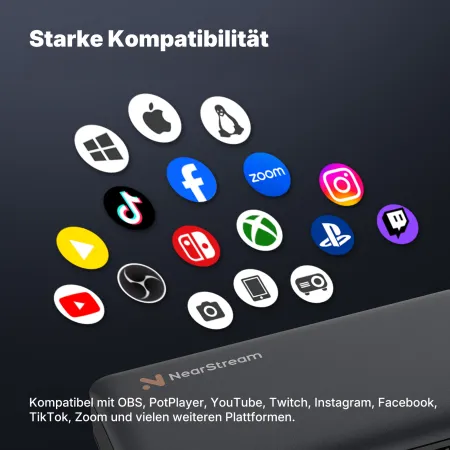 Windows XP/7/8/10/11, Android 5.0 und höher, Linux, macOS, Video-Capture-Card